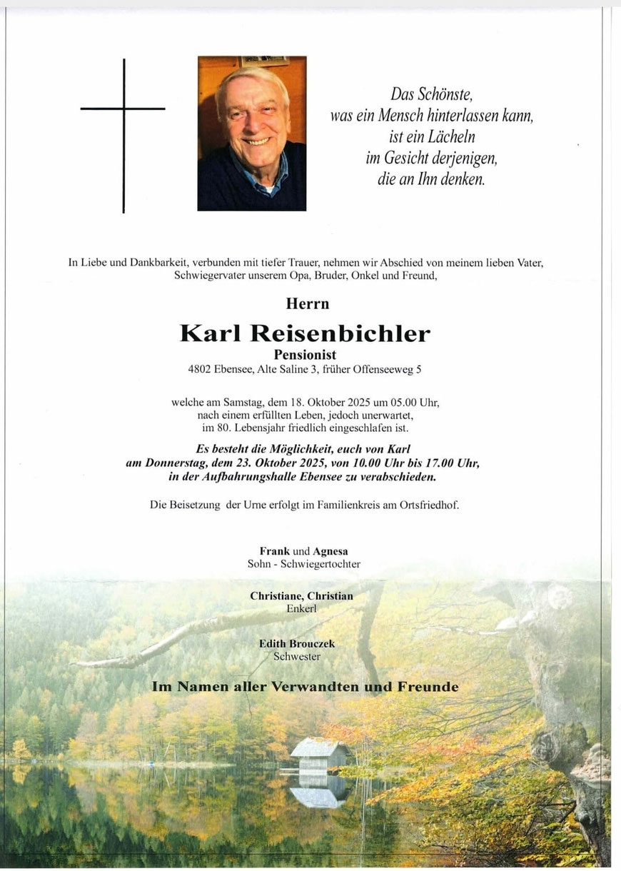 "Karl Reisenbichler hat den Fischerverein Salzkammergut seit Gründung über viele Jahre mit großem Einsatz und Herzblut geleitet. Sein Engagement hat